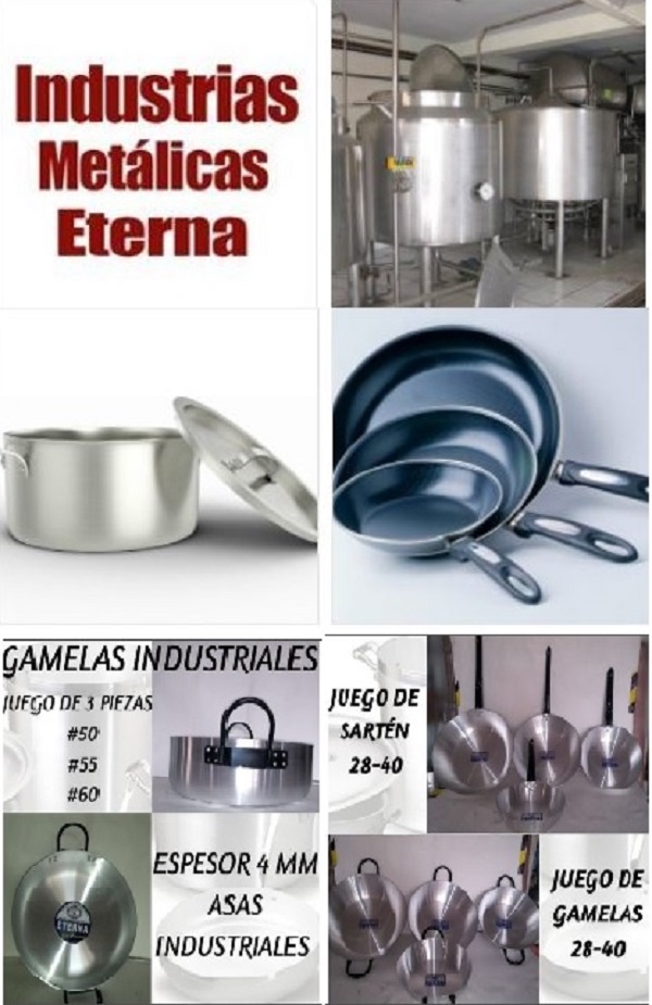 En Industrias Metalicas Eterna E.I.R.L. Somos una Empresa líder en transformación del aluminio. Fabricantes y comercializadores de ollas, sartenes, pailas industriales y Kekeras en diferentes tamaños y espesores para comedores: restaurantes y hospitales.
