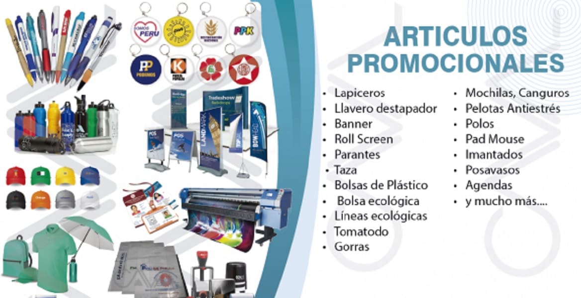 MERCHANDISING: Gigantografía • Banner • Roll Screen • Parantes • Lapiceros • Bolsas de Plástico • Gorras • Llaveros • Pelotas Antiestres • Tomatodo • Bolsas • Mangas • Polos • Pad Mouse • Imantados • Bolsas de Papel • Posavasos Etc.