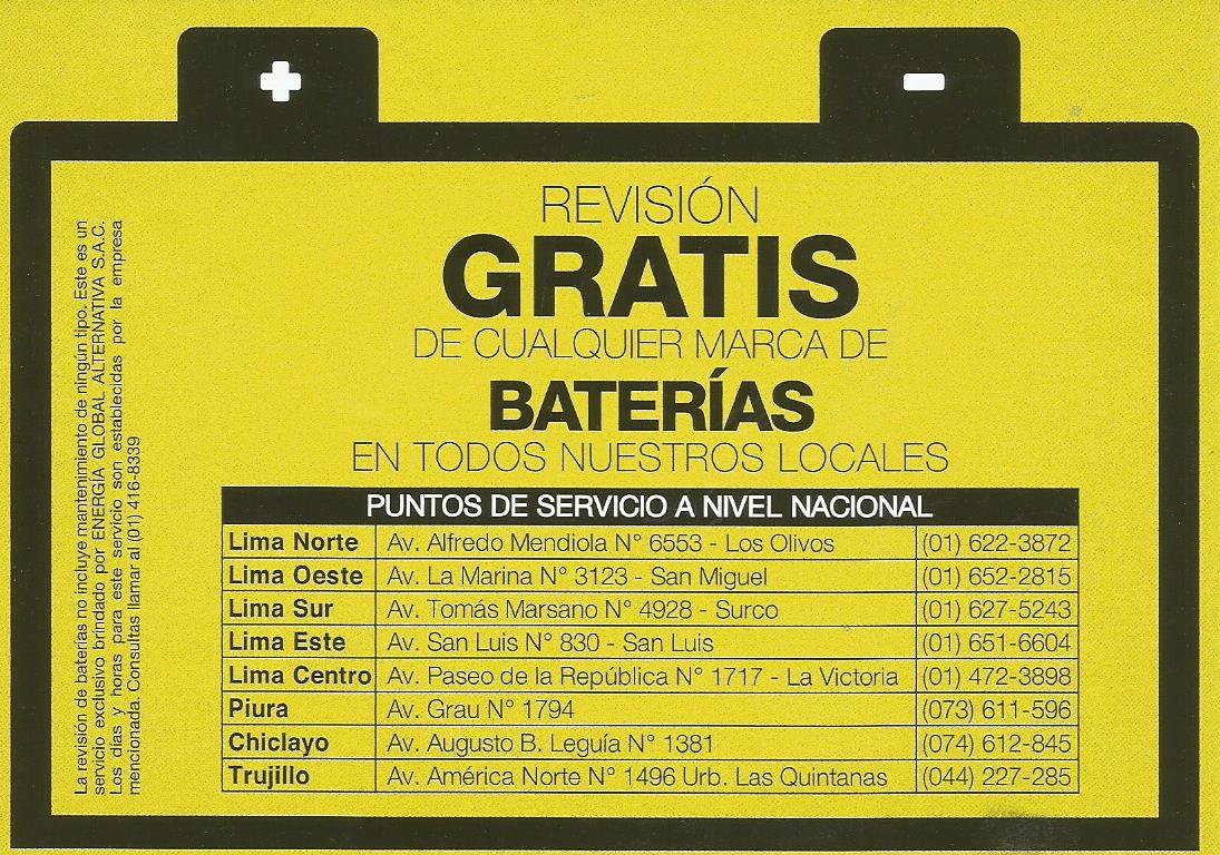 - Tenemos todas las Baterias para todos los Vehiculos, Desde Motocicletas hasta Maquinaria para Mineria, Visite nuestros puntos de Ventas, Revision sin costo.