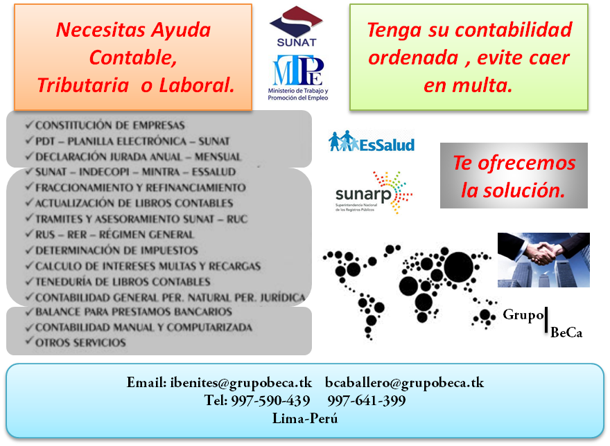 Brindamos consultaría para empresas en diferentes áreas, abarcando todas las posibles necesidades, y entregando soluciones completas y así obtener un posicionamiento de mercado ideal, en forma ordenada y eficiente. Colaboramos con los Emprendedores y en Nuevos Negocios. Asesoría especializada en derecho tributario, calculo, recuperaciones, devoluciones, regularizaciones de tributos y tasas. Planeamiento Tributario mensual y anual Análisis y determinación del Impuesto a la Renta e IGV (mensual y anual). Afrontamos los procesos de fiscalización tributaria por SUNAT. Asesoría en acogimiento a beneficios tributarios, saldo a favor del Exportador, recuperación de IGV exportador, restitución de derechos arancelarios DRAWBACK. Asesoría y preparación de recursos de reclamación y apelación.PDB –EXPORTADORES